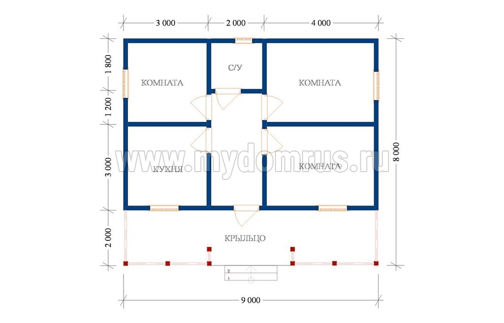 Окна, двери: окна, двери не устанавливаются, остаются лишь не пропиленные проемы для равномерной усадки сруба.