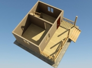 Терраса: в том случае, если терраса проектом предусмотрена, то устанавливаются опорные столбы с компенсационными лифтами (домкратами) под усадку. Отделка террасы, перила — резные., балясины – точеные.